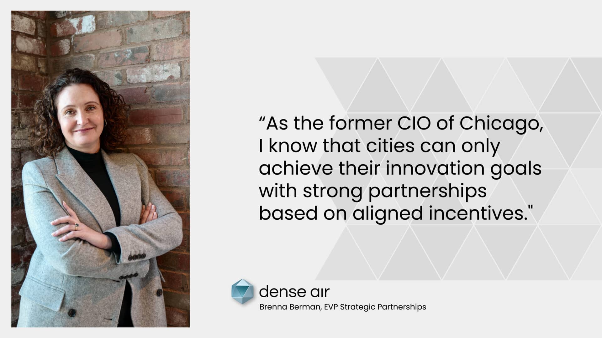 This summer, Dense Air welcomed Brenna Berman, a globally recognized expert on cities, technology, and urban innovation, as our Executive Vice President of Strategic Partnerships. In this role, Brenna brings her public and private sector leadership experience to bear in identifying opportunities for Dense Air to partner with cities and harness our innovative technology to strengthen connectivity for all residents.